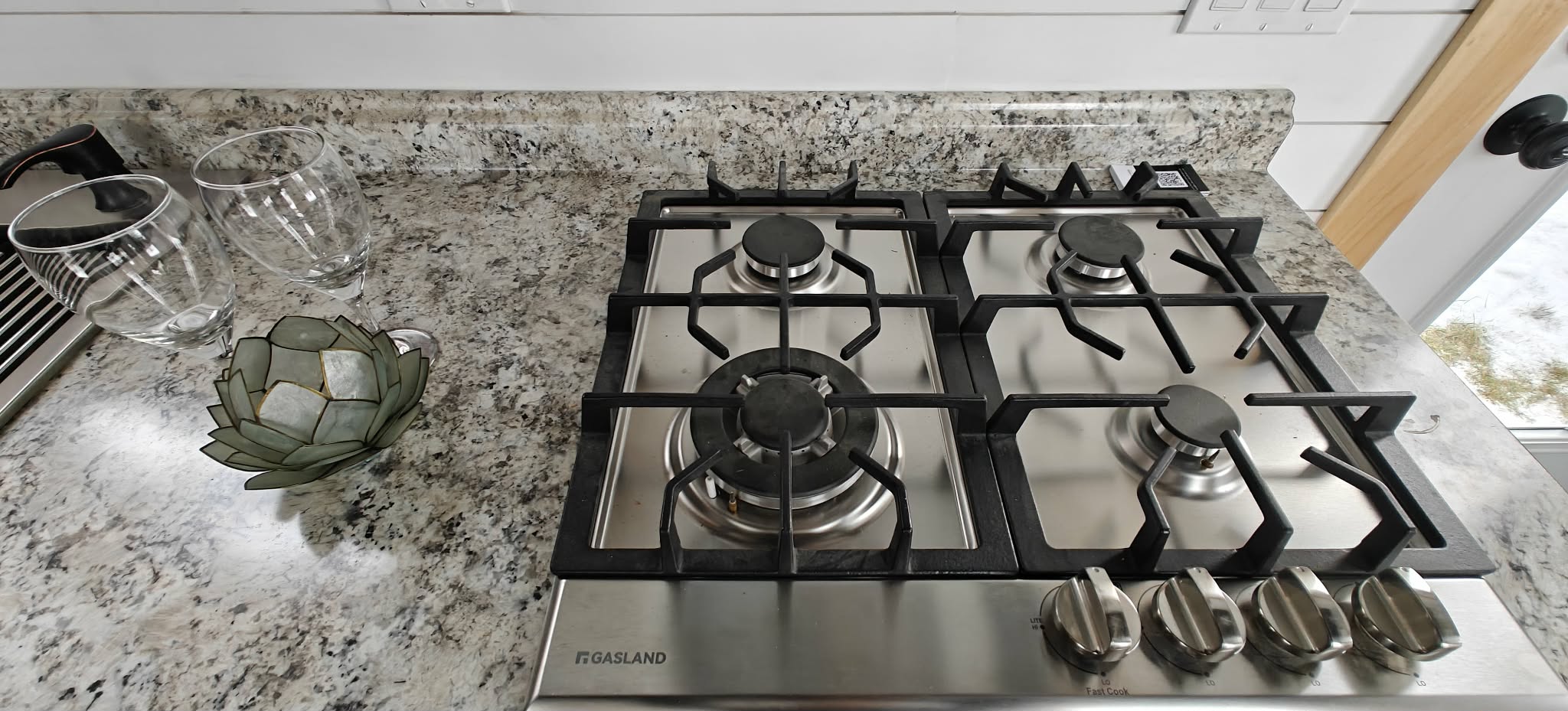 Cooktop: 4-burner gas cooktop with ventless hood.