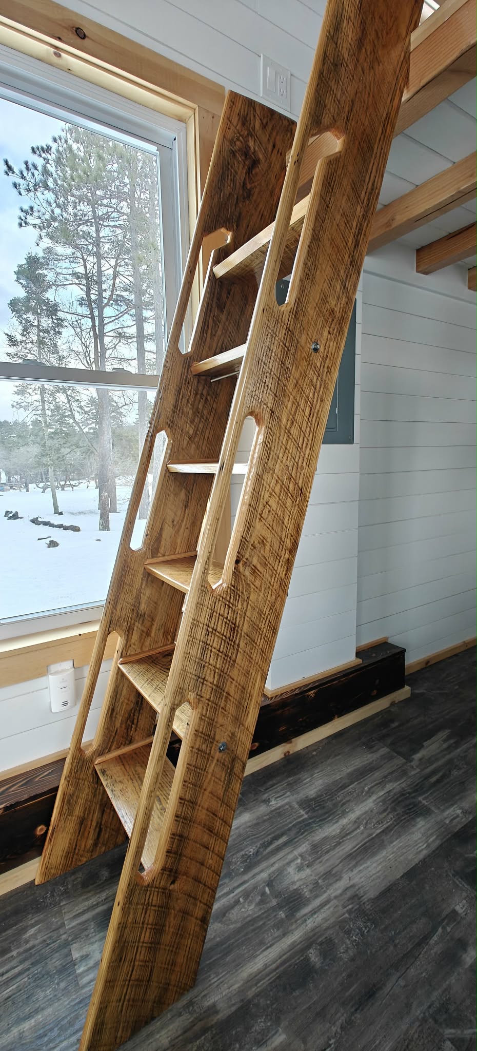 Loft: Spacious enough for a king-size foam mattress with an egress window. Access via ships ladder.